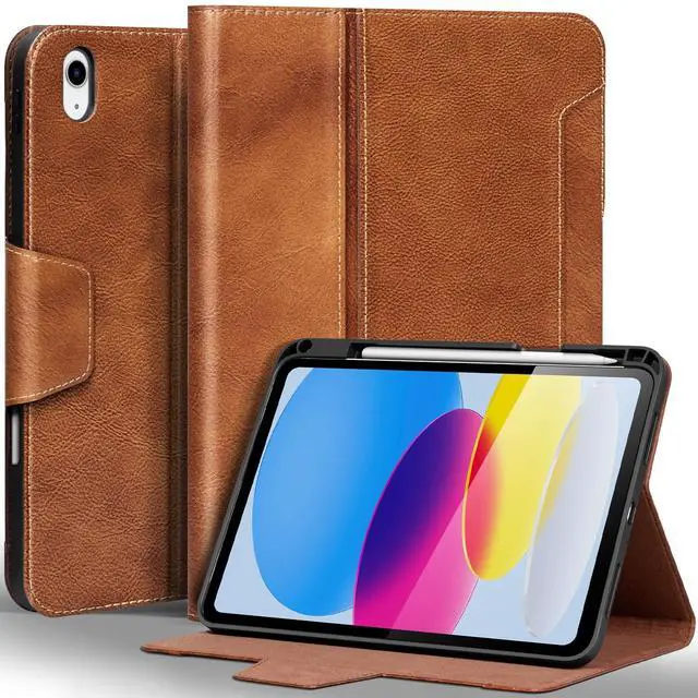 Gexmil Leather Case for iPad (A16) 11th Generation 11 Inch 2025, iPad 10th Generation 10.9 Inch 2022,Protective Cover with Pencil Holder,Magnetic Closure,Auto Sleep/Wake,Vegetable Tanned Brown