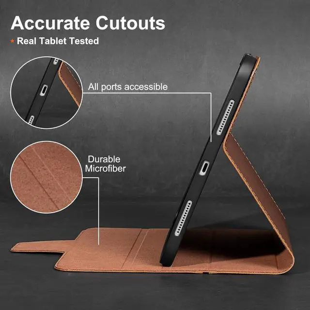 • [MATERIAL&CRAFT] - Exterior is genuine leather protecting camera and tablet body with inner super-fibre lining protecting screen and TPU full package soft inner shell. Full access to all features (Cameras, Speaker, Ports and Buttons); each cutout is tested with relevant tablet before package to make sure working perfectly