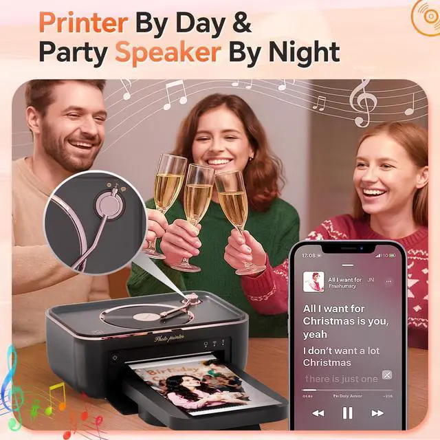 WIRELESS BLUETOOTH SPEAKER MODE: Your photo printer doubles as a speaker! Slide the switch to the "", then connect using your phone's built-in Bluetooth to "HPRT-XXXX" stream songs, podcasts, or ambient soundtracks directly. Perfect for setting the mood during celebrations, cozy nights in, or while crafting photo memories.