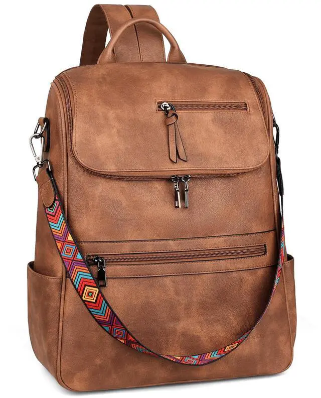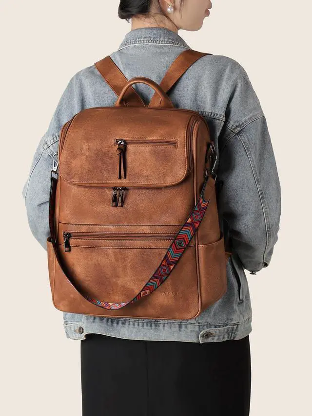 FADEON Laptop Backpack for Women Leather Travel Backpack with Laptop Compartment, Designer Ladies Computer Backpacks Brown