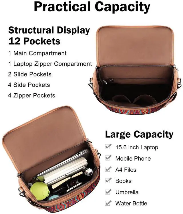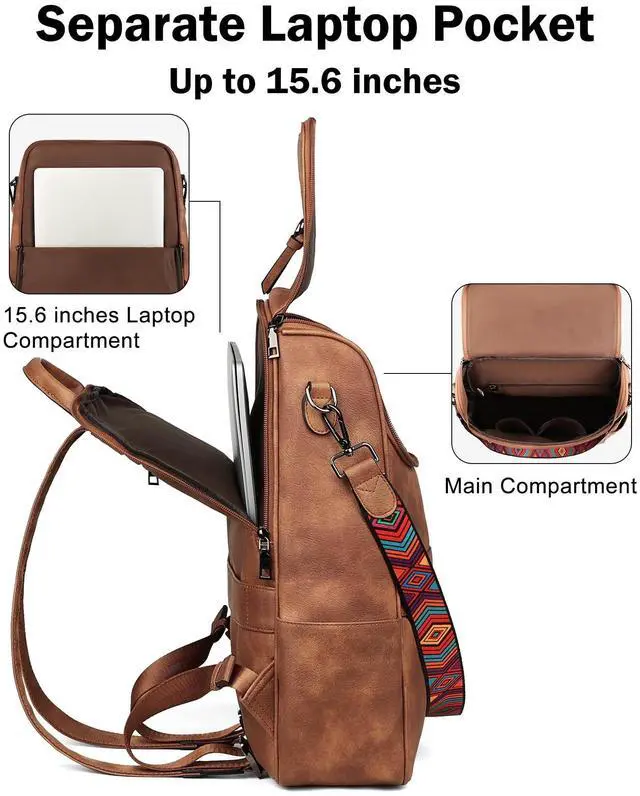 ^^ Shoulder Backpack: This backpack laptop bag for women with a detachable strap can be converted into a shoulder backpack or handbag to meet the needs of different occasions. So the leather laptop backpack with laptop sleeve suitable for a variety of occasions, such as shopping, work, travel, dating, camping, dancing or hiking, for 2-3 days business trip.