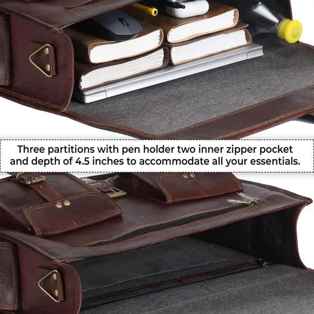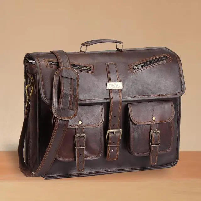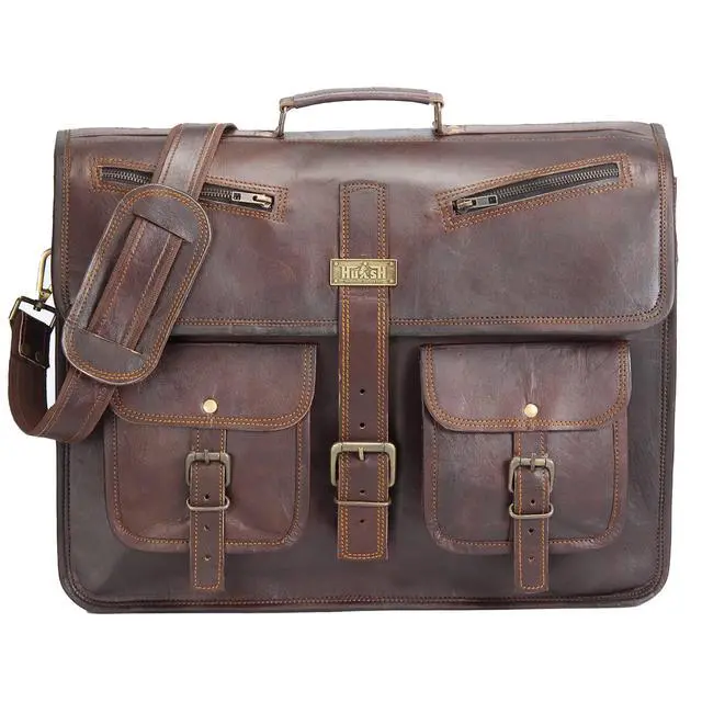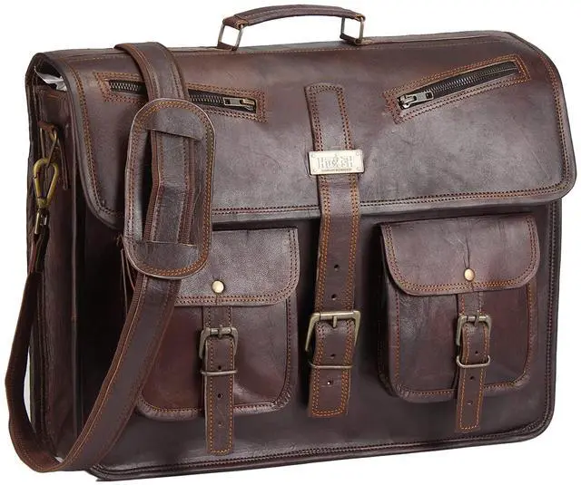 HULSH LEATHER is a company that you can rely on for your leather bag needs. This handmade vintage look leather bag is a perfect accessory for anyone who loves class and style. This bag has a beautiful vintage look that will make you stand out from the crowd. It has a generous size of 18" width x 13" height x 5" depth, and it features a sturdy top handle and an adjustable as well detachable shoulder strap. You can easily carry your laptop, tablet, device, magazine, book or iPad in this bag.