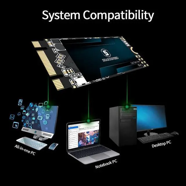 ^^ Excellent Reliability & Data ProtectionThe internal solid state drive is designed with intelligent temperature management and safe cooling system. It is noise-free when working, power-saving, shockproof, and drop-proof. It features error-correcting code (ECC) technology, garbage collection, S. M. A. R. T., and TRIM functions to improve the reliability and security of data transfer and extend the service life of the M. 2 2242 SSD. ^^ Wide Compatibility & Multiple CapacitiesThe M2 2242 SSD is widely compatible with Windows, Linux and other systems, and with various laptops and desktop computers.