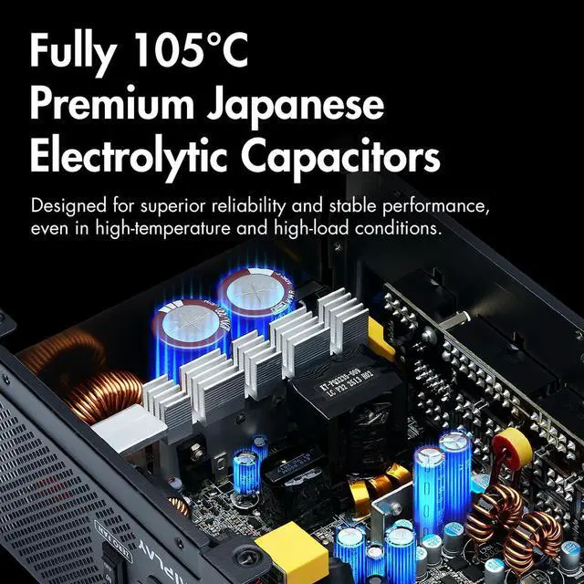 Ultra-Large 148mm Fan With Low-Noise Thermal Control. Equipped with a 148 mm cooling fanthe largest in any ATX power supplypaired with a low-obstruction top grille, supports enhanced heat dissipation and stable internal temperatures under gaming load; operates at lower RPMs to reduce noise and maintain focus during long sessions ^^ ATX 3.1 And PCIe 5.1 Ready For Next-Gen Gaming. Fully compliant with Intel ATX 3.1 and PCIe 5.1 standards; ensures compatibility with next-gen components and GPUs; supports consistent power delivery during sudden load spikes for stable gameplay performance ^^ Native 12V-2x6 Cable For RTX 40/50 Series GPUs.