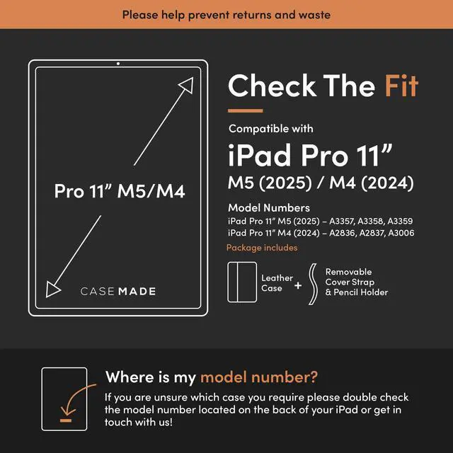 FIND THE PERFECT CASE - Choose from 10+ models spanning 2017-2025, and uncover a diverse range of Casemade cases, perfectly tailored for your iPad. ^^ 100% GENUINE LEATHER - Crafted from real cowhide leather, each Casemade Cover is fashioned from the highest quality materials for unmatched quality. ^^ EASY ACCESS - Experience effortless usage with precisely placed side openings for instant access to all external iPad features. ^^ SMART SLEEP/WAKE - Instant wake-up upon opening, automatic sleep when closed intelligent design conserves energy and simplifies usage. ^^ DUAL POSITION STAND - Effortlessly transform your Casemade cover into a comfortable typing or immersive movie-watching stand.