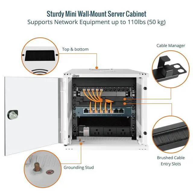 Enhanced Cooling & Security: Vented side slots improve airflow and prevent overheating; lockable front door safeguards sensitive connections ^^