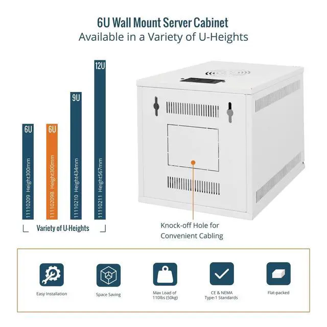 Industry Compliant: 6u 10 inch wall mount cabinet meets CE and NEMA Type-1 standards, ideal for network racks, server cabinets, telecom, AV equipment, and professional data closets