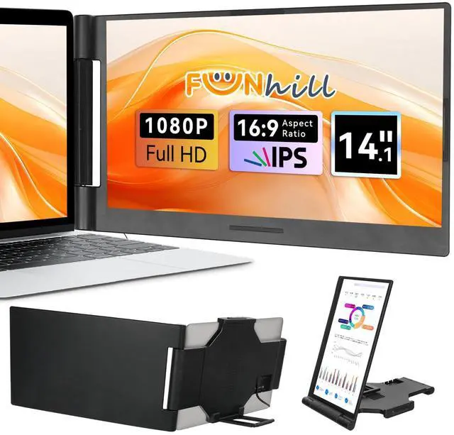 Seamless Productivity Boost: This laptop screen extender is a real game-changer, allowing you to juggle multiple tasks simultaneously, significantly boosting productivity. Seamlessly integrated with 13" to 17.3" laptops, The portable monitor is compatible with Mac, Windows, Chrome, ensuring you enjoy a more comfortable experience.