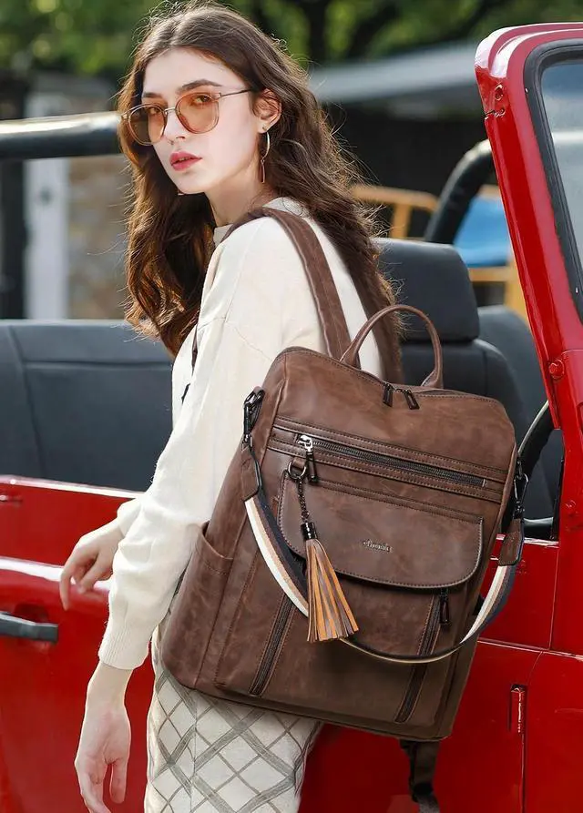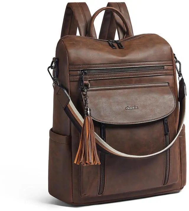 Shrrie Laptop Backpack for Women 15.6 inch,Travel Leather Backpack Purse Nurse Teacher Carry on Backpack Computer Bag,Professional Water-Resistant College Business Work Casual Daypack,Brown