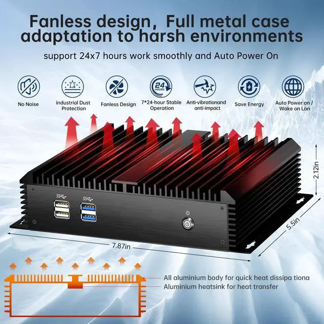 Computer size is: 8* 5.5 * 2.1 inches, Compact size for small spaces such as automotive, medical equipment, factory equipment, etc.