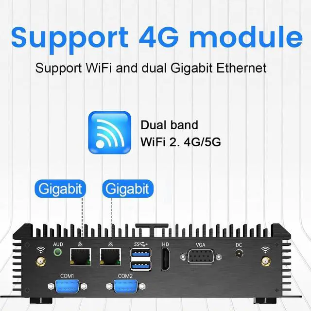 Base Frequency: 2.4GH z(MAX 3.0GH z), 4 MB Cache. Pre-installed Windows 10 pro (64 Bit). 16G RAM/512G Msata SSD. You can expand the storage with an extra an 2.5 inch SATA SSD/HDD drives inside (not include). There are two LAN network interfaces on the mini computer, which can support 4G modules. Support install pfSense software to get up and running fast. ^^ [Can be used in harsh environments] Mini pc support 7x24 hours of stable operation in harsh environments, support Auto Power On, RTC Wakeup, Wake On Lan. The host adopts industrial control design, with super environmental adaptability, fully closed dust, corrosion resistance, shock resistance, with better electromagnetic compatibility and high anti-interference ability which is a good helper for is industrial production. ^^ [Low power consumption, Fanless and zero noise design] Fanless Mini PC use of 'ice spine heat dissipation' structure, stronger heat dissipation, compared to the same kind of touch all-in-one machine more energy saving, save the use of electricity. Integrated port can be used for projector, TV, monitor, printer and many equipments. This mini computer is ideal for home entertainment, offices, factories and can adapt to harsh environments.