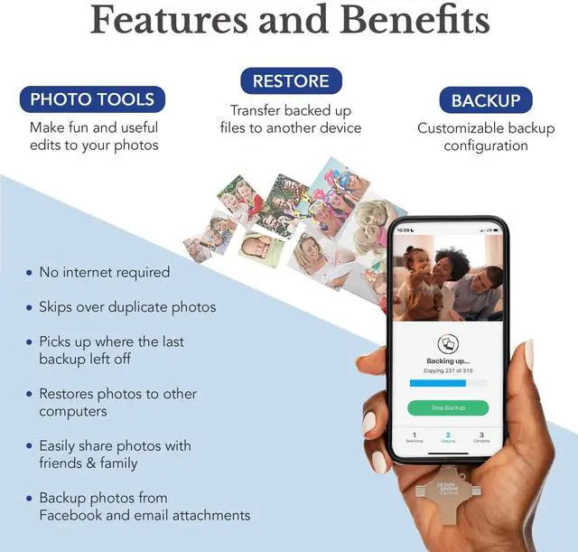 Multi-Device Compatible: Picture Keeper is compatible with iPhones and iPads with iOS 12 and newer, Android 5 and newer, Windows 7 and newer, and Mac OS 10.3 and newer
