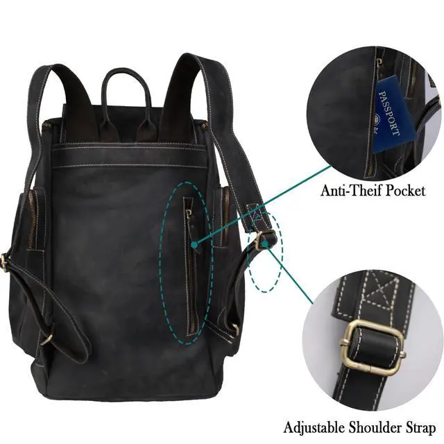 Premium Crazy Horse Leather: Crafted with full-grain heavyweight leather, develops unique vintage patina over time for personalized character, each stitch is reinforced for lifelong durability. The substantial 4.2 lb weight signifies uncompromising quality that outperforms synthetic backpacks.