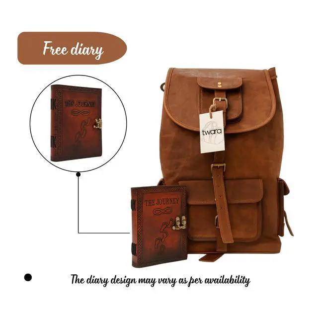 FREE LEATHER DIARY INCLUDED: Comes with a handmade leather diary ideal for journaling, note-taking, travel writing or gifting. A bonus for customers looking for leather backpack gift set, free diary offer bag, travel journaling set, etc.