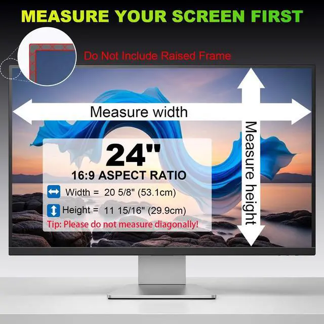 Compatible with Various Monitor Brands Fits monitors with a width of 20 5/8 inch ( 53.1 cm) and height of 11 15/16 inch ( 29.9 cm). Compatible with HP, Samsung, Dell, Lenovo, Acer, ASUS, LG, ViewSonic, etc.
