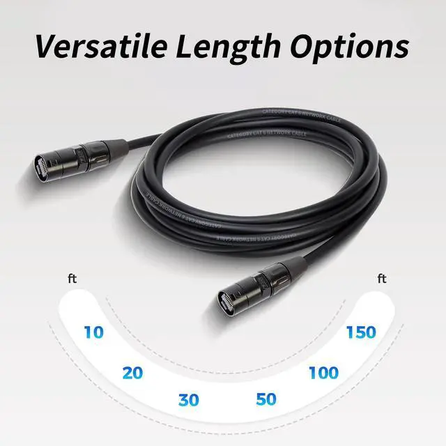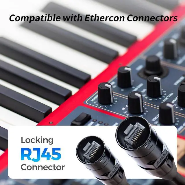 Ethernet Cable: Built specifically as an EtherCON cable, this Cat 6 Ethernet solution is fully compatible with EtherCON ports, boasting ultra-rugged, durable connectors engineered to deliver maximum performance and long-lasting reliability. Made to withstand the demands of pro environmentsfrom touring setups to permanent installationsit stands as the ideal connector standard for stage lighting systems and professional audio/video (Pro AV) equipment.