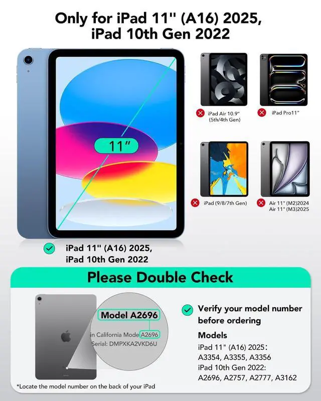 Compatibility: only compatible with iPad 11th(A16, 2025)/10th Generation; models A3354A3355A3356A2696A2757A2777A3162 ^^ Work from