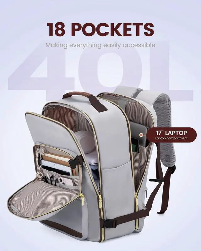 Multiple Pockets: The travel backpack for women with a 40L capacity and 4 main compartments, this travel backpack can meet both your daily and travel needs. It can easily accommodate all your items for a 3-5 day trip. ^^ Includes 3 Packing Cubes and
