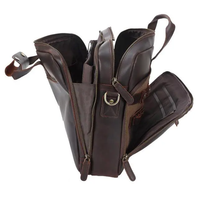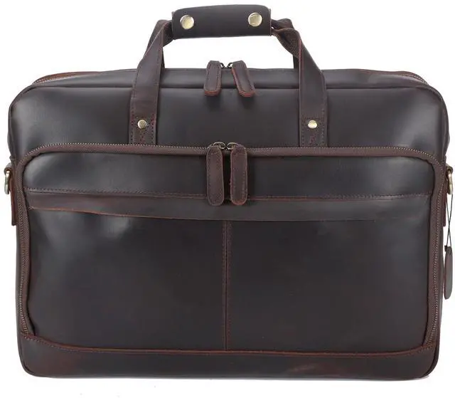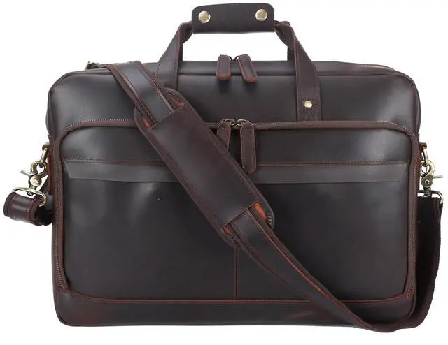 DescriptionThis 18" leather briefcase is the epitome of sophistication and functionality. Crafted from full-grain genuine leather, it exudes a timeless elegance that will never go out of style. With dimensions of 18" x 12.5" x 4" ( 45.7 cm x 31.8 cm x 10.2 cm), it offers ample space to accommodate your laptop, documents, and essentials, making it the perfect companion for the modern professional. Whether you're heading to the office, a business meeting, or a casual outing, this messenger bag seamlessly transitions from work to play. Its durable construction and sleek design ensure it will withstand the rigors of daily use while maintaining its polished appearance.