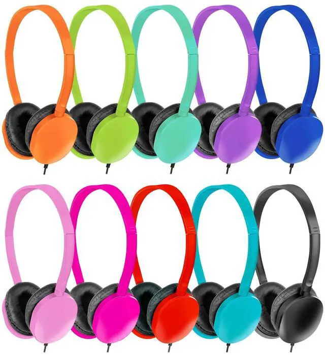 15 packs of 10 Colors Wired Headphones Bulk for Schools Classrooms Families ^^ Bulk Headphones great for Sound Quality and the Students Enjoy the Leather Ear Covers- very Soft and Comfy ^^ Upgraded the ruggedized 3.5 mm plug, you don't have to worry about using it for less than one school year, these are sturdy ^^ Adjustable Over Ear Headset, over ear Headphone has an adjustable headband, which fits your head shape; Student over the head earbud uses good material to make the earphone portable and suitable for most Students and adults, suitable for people aged 12 and above handling daily listening tasks ^^ Compatible with tablets, ipads, Chromebooks, Switches, laptops and more, whether at home, at school, or on the go, these children's headphones are a great choice
