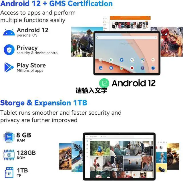 Android 12 OS & 8GB RAM 128GB ROMThe 109 android tablet runs on Android 12 system and is loaded with an 8GB of RAM and 128GB of ROM for storing all your apps, files, and media. This tablet is perfect for playing large games and loading large data. It has lightning-fast speed and smooth performance. You will find that web pages load without any lagging and apps open in a snap. Whether you're streaming videos, playing games or working on important documents, this tablet handles every task easily. ^^ 10.1 inch FHD IPS tablet + wireless projection + 5MP/13MP Camera The tablet has a 10.1 inch 1920*1200 resolution.