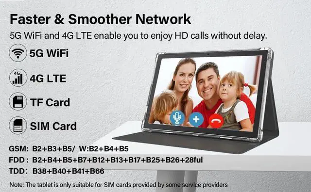 The android tablet has passed the Google GMS certification. You have full access to the latest Google service, such as Google Play, WhatsApp, G-mail, Skype, Disney+, Netflix, YouTube, ZOOM, Google Assistant and more brilliant apps ^^ 2.4G /5G Wifi + 8000mAh + GPSTablets with AC dual-band 2.5 +5G WiFi, providing an ast Internet experience with less radio interference. 8000mAh and a low-power processor. Achieve up to 10 hours of video battery life. It also has GPS, you can use Google Maps if you download offline maps to your tablet.