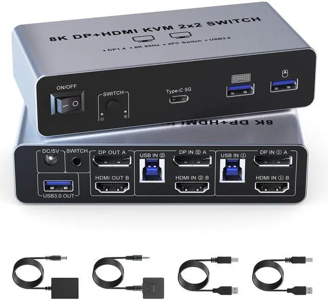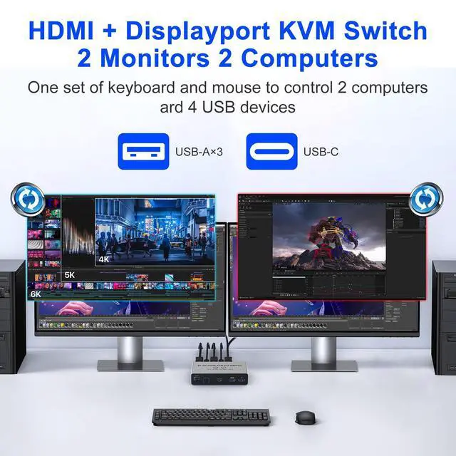 Note: HDMI cables not included. ^^ 8K KVM Switch Dual Monitor with