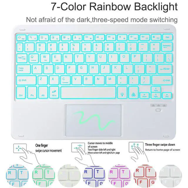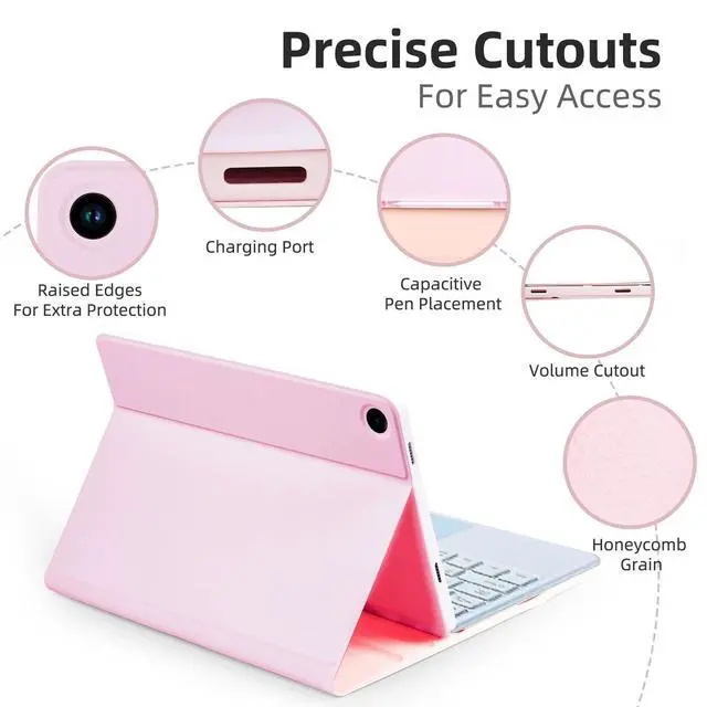 4: Find the name of the keyboard on the tablet: Keyboard, click Pair, and the connection will be successful ^^ Smart TouchpadThe high-precision smart touchpad supports multi-finger gestures such as click, pinch, slide, and scroll. Just move your fingertips to accurately control the tablet, perfectly realize the mouse function, and enjoy the excellent experience of a laptop. It can bring you extremely high work efficiency ^^ 7-Color Backlight, Multi-Function KeyboardSuitable for Samsung Tablet A9+ RGB backlight keyboard, 7 adjustable backlight colors, breathing light backlight mode can be automatically switched. The backlit keyboard can be used in the dark, providing a comfortable typing experience. Rich function shortcut keys allow you to use Samsung Tablet A9 more efficiently and comfortably, such as editing documents, navigating applications, and creating presentations ^^ Precise Hole Location, Honeycomb Design, With Pen Slot The mold of the A9+ protective case is made based on the real A9+ tablet, and the precise cutouts provide perfect protection and convenience for daily use. The soft TPU inner shell adopts a honeycomb design, which is beneficial to the heat dissipation of the tablet and improves the performance of the tablet.