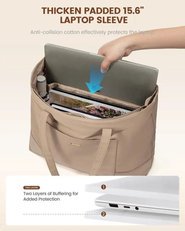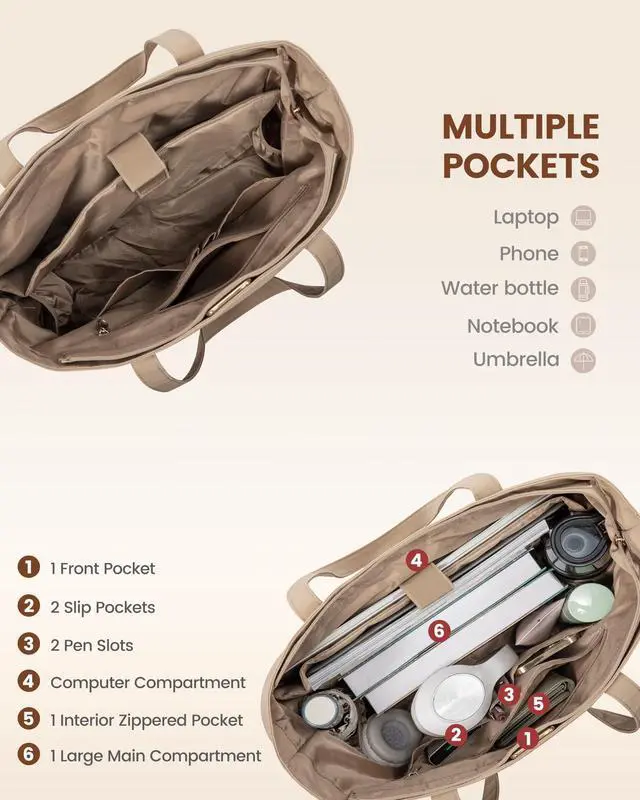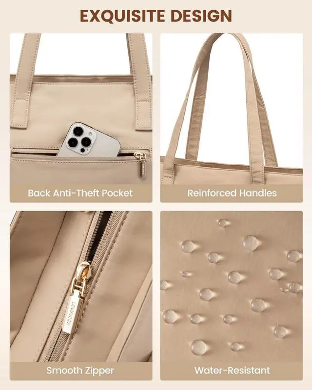 SECURE LAPTOP COMPARTMENT: Equipped with a padded laptop compartment, the work bag for women offers robust protection for your electronics. This ensures that your devices are safely stored, giving you peace of mind whether you're commuting or traveling ^^