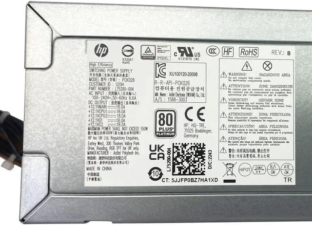 BestParts 550W Power Supply Compatible with HP Z2 280 288 600 680 800 880 G4/G5/G6/G8 Envy TE01 Pavilion TG01 TP01 Desktop PSU Unit L75200-001 L75200-004 PA-5551-1HA PA-5501-2