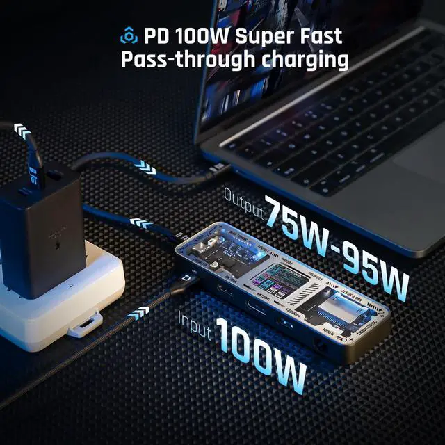 Ports Expansion: Equipped with a USB-C 100W Power Delivery input port, an HDMI port, a DisplayPort, 1 USB-C and 1 USB-A 10Gbps data port, 2 USB-A 2.0 ports, 1 Ethernet port, an SD card slot, and a microSD card slot ^^