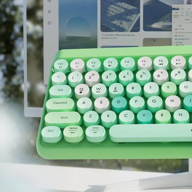 Retro Aesthetic: Features 84 typewriter-style floating round keycaps, combining vintage charm with modern functionality ^^