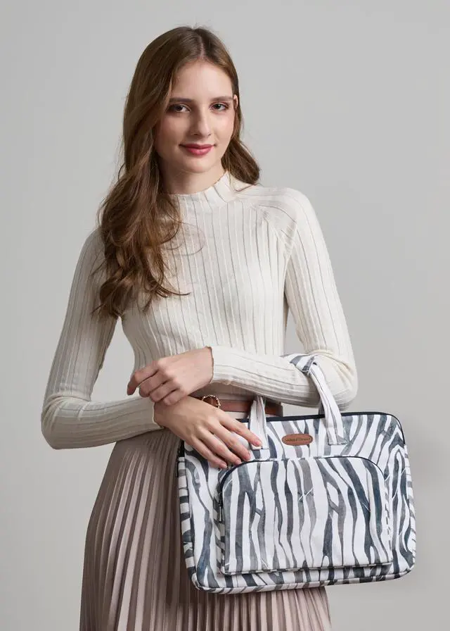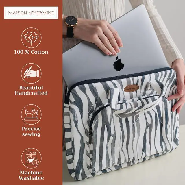 Maison d'Hermine Laptop Bag with Pocket Upto 15.5 inch Stain and Water Repellent Cotton Canvas Easter Gifts - Zebra