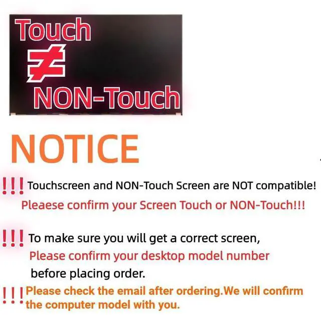 Question 2: WHAT SCREEN PART I NEED CORRECTLY? When only the touch screen (Digitizer) is broken, you should still see what is happening on the screen, and the screen display should still function as normal. When only the LCD is broken, you can still use the touchscreen, but the panel will have dark blobs or spiderweb-looking cracks (or both). When both LCD and touch screen are damaged, you may still be able to use portions of the touchscreen, and some parts of the LCD may display the image, but you will incur obvious difficulties in using the device as normal. If you are uncertain whether our item is suitable for your laptop, please contact us. Tell us your screen model number and send us some screen photos with screen number, we will help you find a 100% suitable screen replacement.