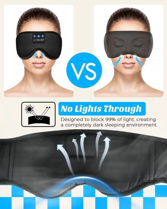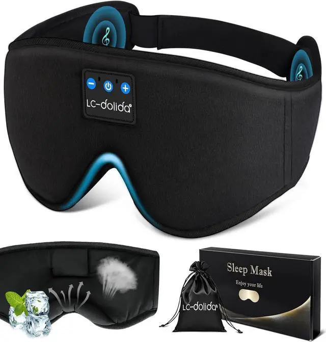 Additionally, it offers a timer function (30-120 minutes) to prevent Bluetooth music from playing all night. ^^ Bluetooth 5.4 Stereo Sound & Washable DesignDesigned with full coverage and a unique nose area contour, this sleep eye mask effectively blocks out light, helping you fall asleep undisturbed. The upgraded 3D contoured design allows your eyes to move freely without pressure. ^^ The Perfect Gift ChoiceLC-dolida Sleep Headphones come with a 12-month replacement guarantee. Ideal for home, hotel, or airplane use, they are perfect for relaxation, naps, meditation, and insomnia relief.