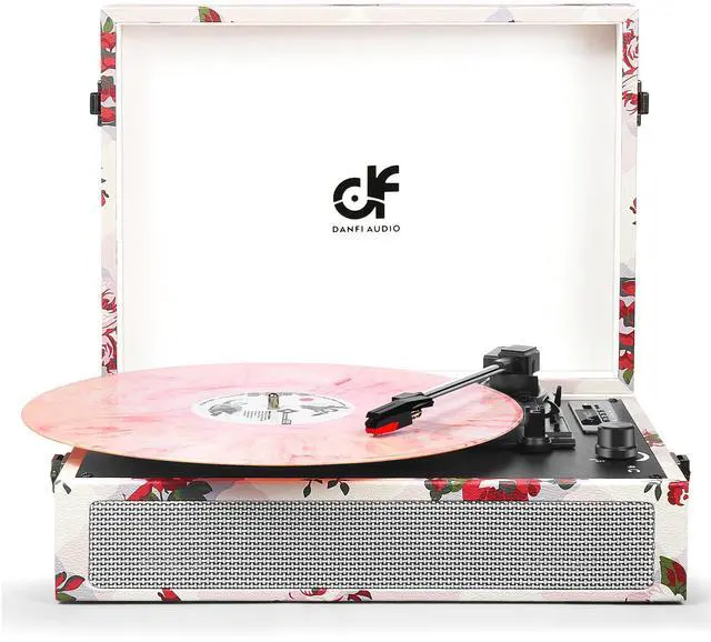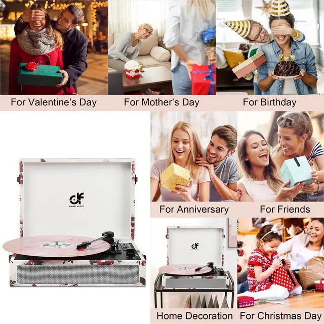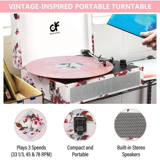 Women & Girls: Surprise her with a rose floral vintage record player that blends retro charm & modern tech an ideal birthday, Mothers Day, or housewarming gift for music-loving women seeking timeless elegance. ^^ All-in-One Bluetooth Turntable with