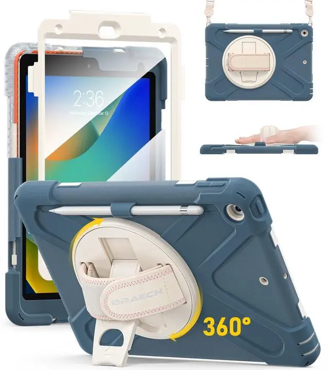 Inch 2019 [MODEL: A2197/A2198/A2199/A2200], WILL NOT FIT ANY OTHER MODEL. Pencil Cap Holder is included, but Apple Pencil and Pencil Cap is not included. ^^ Full Body Protection Three layer structure design with built-in transparent screen protector provides a full around protection against scratch, impacts and shock during daily use. Built-in Apple Pencil Holder and Apple Pencil Cap Holder offer a safe way to store your iPad Pencil while using our case. ^^ 360 Swiveling Stand & Hand Strap Located on the back of iPad 9th/8th generation 10.2 Inch shockproof case 2021/2020, built-in 360 degree rotating kickstand and adjustable handle hand strap provides a more flexible and convenient way to use your tablet during work, study or journey, ideal for students, teachers, engineers, cashiers and waiters, etc. ^^ Adjustable & Detachable Carrying Strap Portable Shoulder Strap allows to carry your iPad in landscape/portrait mode securely in outdoors or hang your iPad in kitchen, bedroom, car seat for convenient usage. ^^ Customer Service Our Professional Service Team will solve your problems to ensure your complete satisfaction within 24 hours. Just SEND EMAIL to contact us if you meet any problem such as replacement, refund, strap, installation guide.