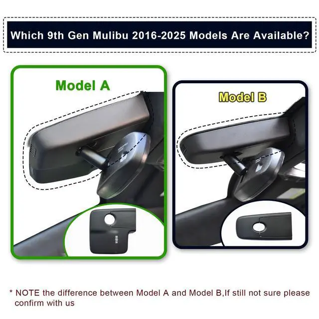 Power Adapter(asin: B0CXXXV4YG). ^^ Model A & Model BThe model A and model B match the same vehicle year and must be distinguished by the vehicle sensor cover. Seriously compare THE SECOND PICTURE and THE Third PICTURE. ^^ Custom fit for Chevrolet MalibuMangoal 4k dash cam can fit perfectly behind the rear view mirror like original. No messy wiring exposed, no complicated rewire at all. Perfectly intergrated with Chevrolet 9th Gen Malibu 2016-2025 vehicle styles (Model A), Such as l, 1LS, RS, 1LT, 2lt, Premier. ^^ Built-in WiFi, free AppThe built-in WiFi owns higher-definition and faster download speed, and the free user-friendly App makes it convenient to view realtime videos on your phone, download or transfer important footage to PC. You can also share videos on social media with friends or families whenever you want. ^^ What you getMangoal OEM Look 4K Dashcam x1, 64G MircoSD Card x1, User Manual x1, OBD Power Adapter x1, Auto-Dimming Rearview Mirror Plug Power Adapter x1, Crowbar x1, Strap x2, worry-free 12-month warranty, and friendly customer service.