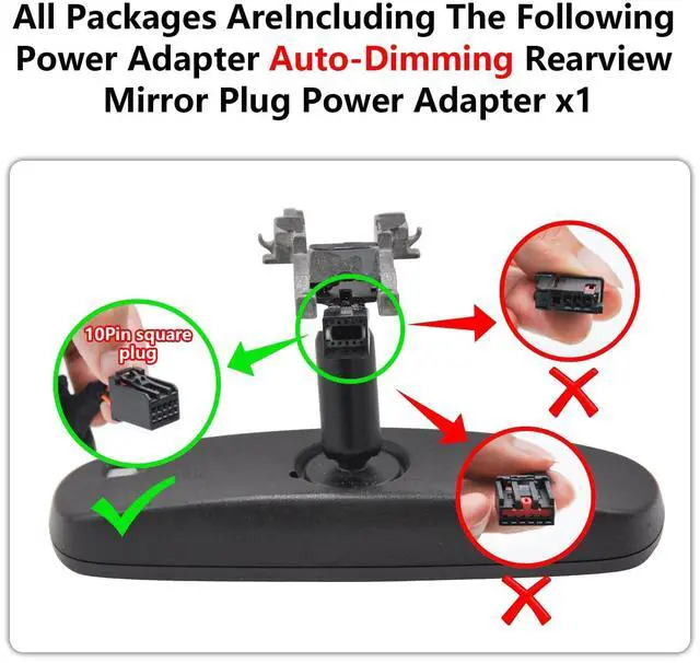 Please NoteYour car must have an Auto-Dimming Rearview Mirror Plug Power Adapter (10Pin square plug), otherwise, power can only be obtained through OBD or Fuse box. Parking monitor must have OBD Power Adapter or Fuse Box