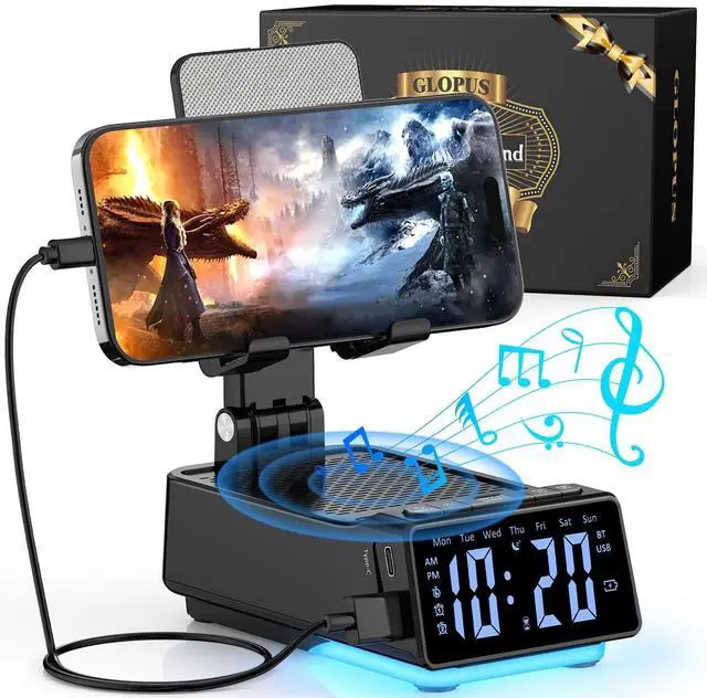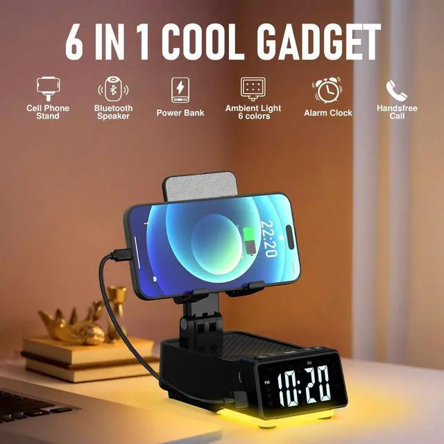 Bluetooth Speaker & Phone Stand: The perfect gift for mom and dad. This all-in-one device features a Bluetooth speaker, adjustable phone holder, power bank, 6-color mood light, digital alarm clock, and hands-free calling. Enjoy clearer sound, convenient charging, ambient lighting, and easy video callsideal for birthdays, holidays, and everyday use ^^