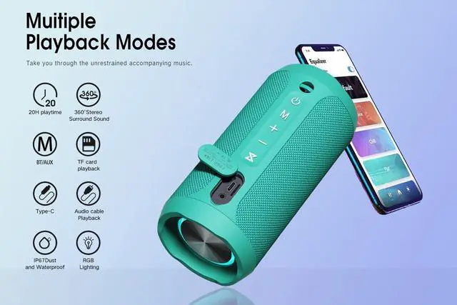 ^^ IPX7 Waterproof & Durable Built to withstand rain, snow, poolside splashes, and outdoor adventuresready for any season or setting. ^^ Up to 20 Hours of Playtime Long-lasting battery ensures uninterrupted music from Christmas Eve to New Years celebrations and beyond. ^^ Compact & Multi-Playback Support Features Bluetooth, TF card, and AUX input. Its portable size makes it a great stocking stuffer, travel speaker, or on-the-go companion. ^^ TWS Pairing Function Connect two speakers wirelessly for an amplified stereo experience, doubling the fun at parties and gatherings.