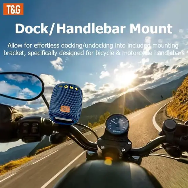 Loud HD Sound with Enhanced Bass-Equipped with premium drivers, this portable wireless speaker delivers powerful HD sound with crisp highs and deep bass. Ideal for outdoor cycling, mountain biking, hiking, camping, and daily use. ^^ Secure Bike Handlebar Mount for Safe Riding-This bike Bluetooth speaker comes with a reinforced, anti-slip handlebar mount that keeps the speaker tightly secured, even on rough trails. Enjoy hands-free cycling audio for safer and more enjoyable rides. ^^ IPX4 Waterproof Outdoor Speaker & Shockproof Design-Engineered for outdoor riders, this waterproof bike speaker resists rain, splashes, and dust.