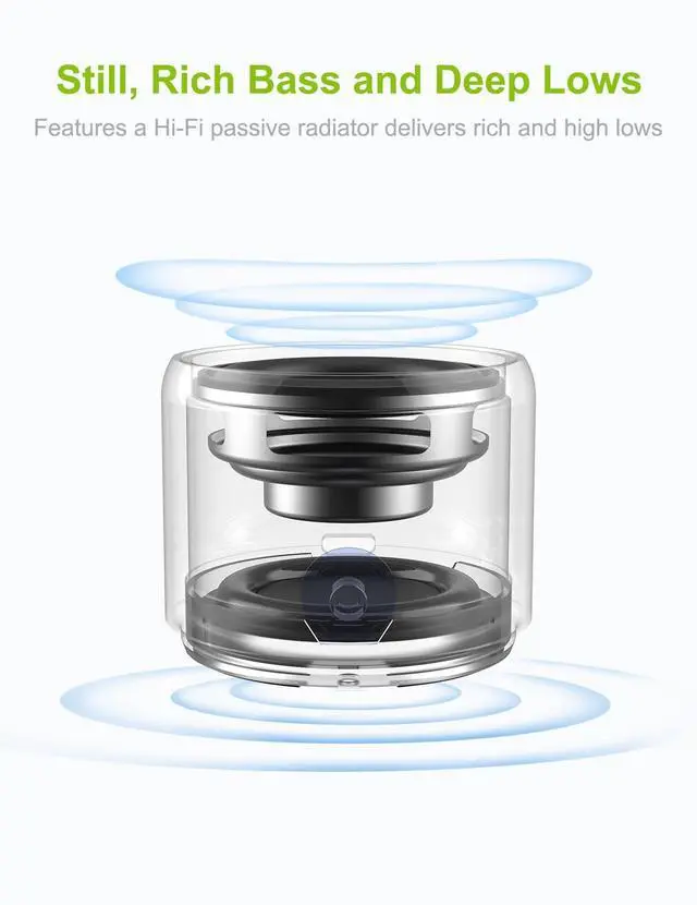 So it is perfect for outdoor, hiking, beach, dorm room, kitchen, bathroom, boat, golf car and more. ^^ LONG BATTERY LIFE - the built-in rechargeable battery ensures 5 hours of play time, and up to 8 hours at 50% volume. Just half an hour of charge time with 1A charger equals 3 Hours of play time. ^^ SIMPLE YET STYLISH DESIGN - our vision was to make a small wireless speakers with bluetooth that is just a speaker, so you can use it anytime, anywhere. We gave up functions such as a microphone, 3.5 mm jack and unnecessary buttons, leaving one silicone button (Hold to switch on/ off, one-tap to pause, double-tap or triple-tap to switch songs), a perfect gift.