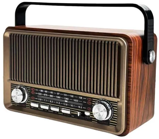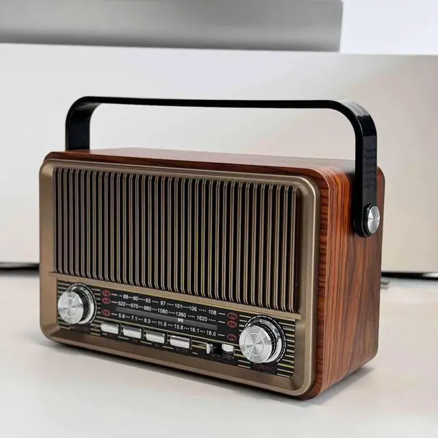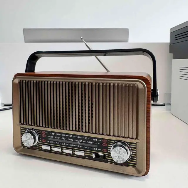 Retro Design: This portable radio boasts a vintage-inspired aesthetic with a wooden cabinet and classic radio dial, perfect for nostalgic listeners. ^^ This radio is like an artistic treasure traversing time and space, meticulously restoring the classic design of the last century. The elegant wood grain exterior exudes a vintage charm, with a simple panel and exquisite knobs showcasing a unique design aesthetic. Each piece is like a carefully crafted work of art, perfectly integrating into modern home spaces while evoking deep nostalgia for bygone days. ^^ This is more than just an electronic product; it's an emotional carrier that transcends time and space. It ingeniously blends nostalgic sentiment with modern technology, allowing people of different ages to find a common emotional resonance. Made with carefully selected high-quality materials, every detail speaks of a tribute to the classics, carrying the warmth of time and the tenderness of memories.