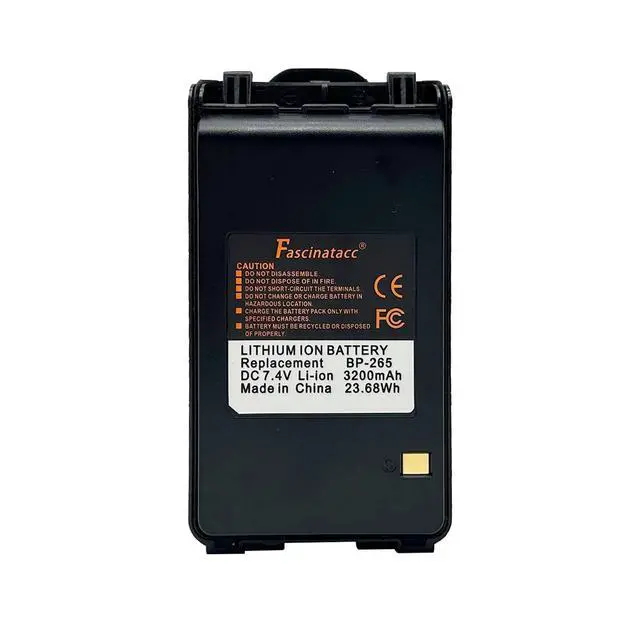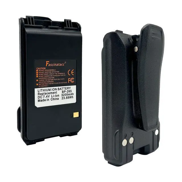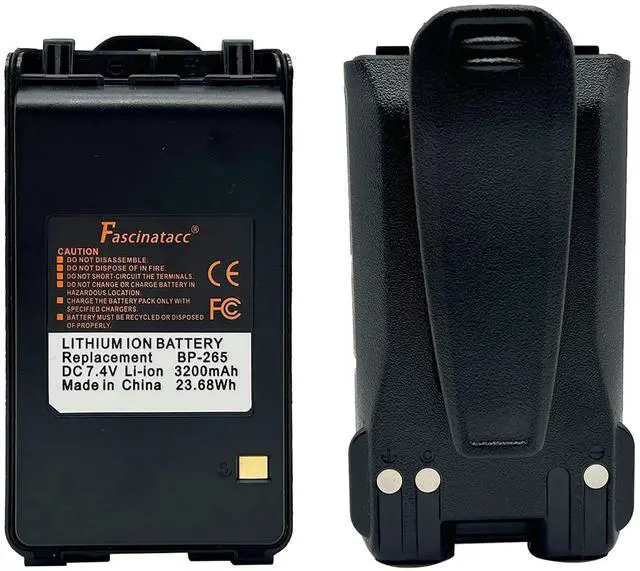 Type: Li-ion, Capacity: 3200mAh, Voltage: 7.4V, WH: 23.68W h. ^^ [Battery Replacement Models] - BP-265 BP-265li. ^^ [Compatible with Two Way Radios] - IC-F3001 IC-F4001 IC-F3002 IC-F4002 IC-F3003 IC-F4003 IC-T70A IC-T70E IC-V80 IC-V80E IC-F3004 F3101D F3103D F4101D F4103D. ^^ [Compatible with Charger] - BC-193. ^^ [Safe] - Safety protection - Over-charge, over-discharge, over-heat, over-current & short-circuit protection. ^^ [Any Time to Use] - No memory effect, you can use it any time and no need to discharge it fully then start to use. ^^ [Package Included] - 1PCS BP-265 battery, 1PCS belt clip.