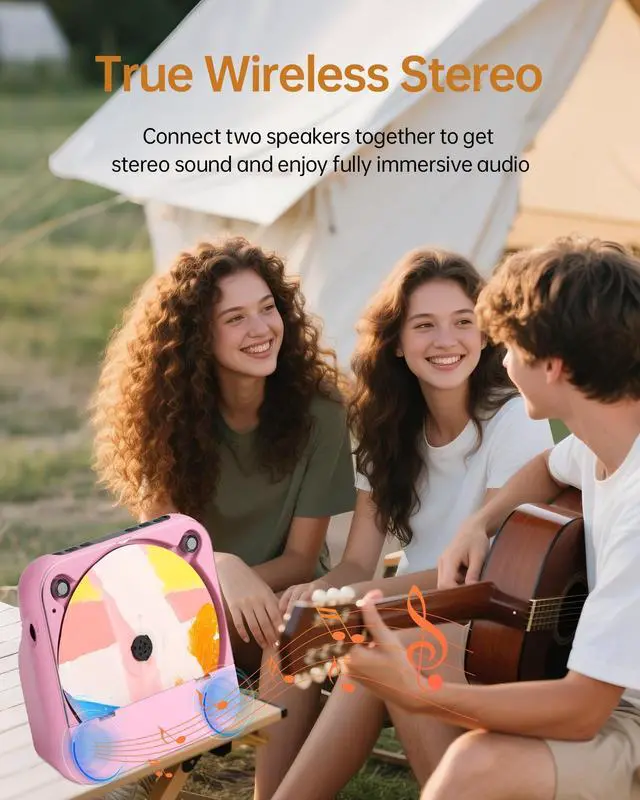 A wide range of functions is compatible with five CD formats such as CD, CD-R, CD-RW, MP3, and WMA. ^^ Desktop Creative DesignDesktop CD Player with a 75-degree angle desktop design, no assembly required. Placed on the desktop, it not only saves space but can also be used as a standing speaker to play music. Equipped with a remote control, convenient for you to control this CD player from your living room or bedroom, etc. The appearance is cute and mini, making it a powerful tool for your child's learning.