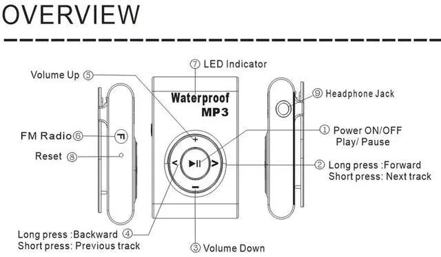 Type: Water Proofing MP3 Player Water Proofing Rating: IPX8Memory