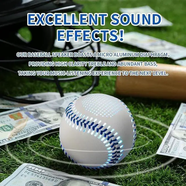 ^^ Excellent Sound Effects: Experience crystal-clear audio like never before. Equipped with a micro aluminum diaphragm, this baseball speaker delivers high-clarity treble and deep bass, enhancing your music-listening experience and adding excitement to every game. ^^ Portable