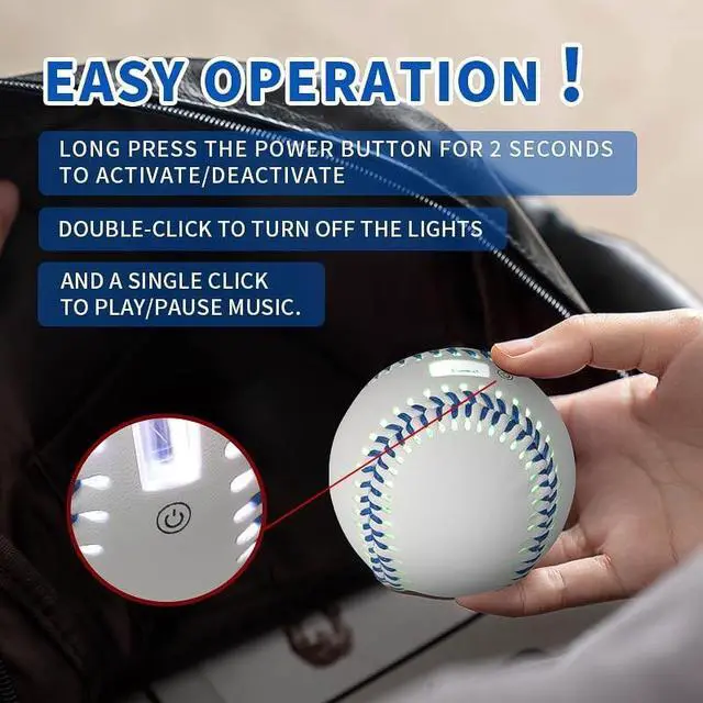 Jumping Lights: Elevate your baseball experience with the JIOBOLION Baseball. Featuring 6 mesmerizing dancing lights that sync to your music, this glow-in-the-dark baseball will create a vibrant atmosphere during games. Activate the 8 LED bulbs with a simple click and enjoy a spectacle of colors that will impress everyone around you.