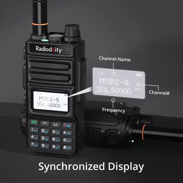 Sync Display & Dual Watch: The display sync function shows you channel name and frequency in single watch mode while dual watch enables you to monitor two channels at the same time so you never miss a communication. ^^ UHF, VHF, NOAA